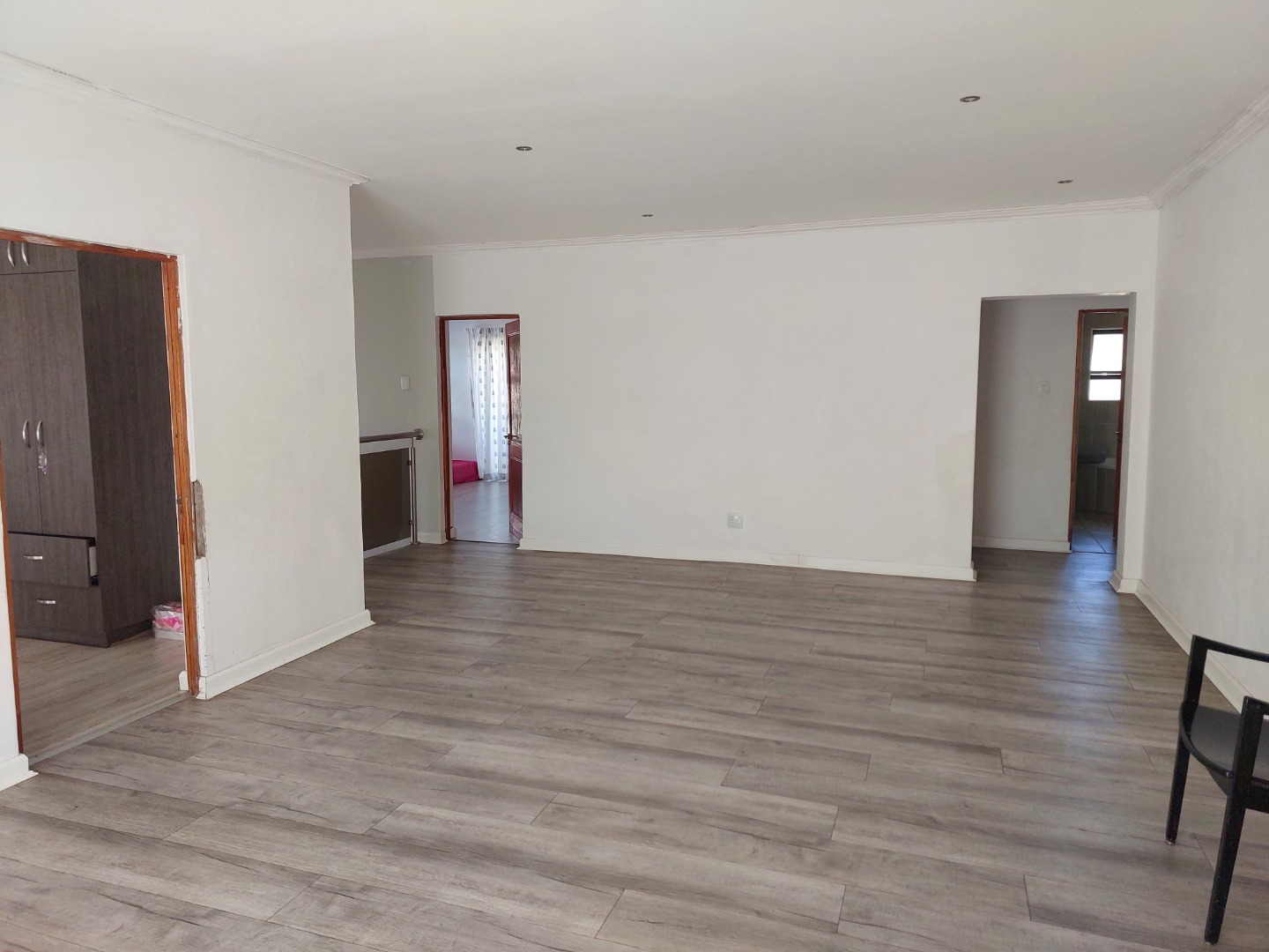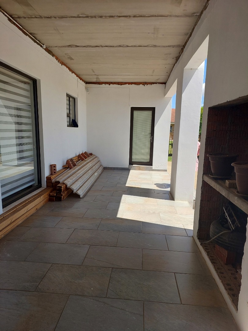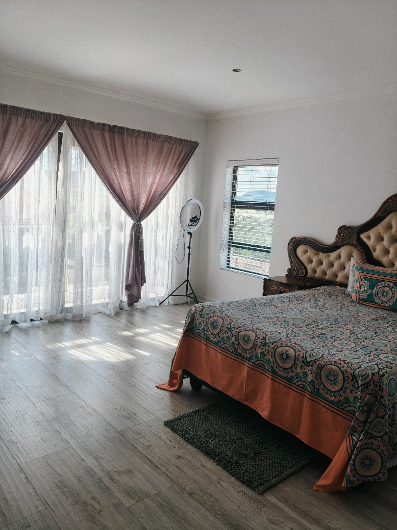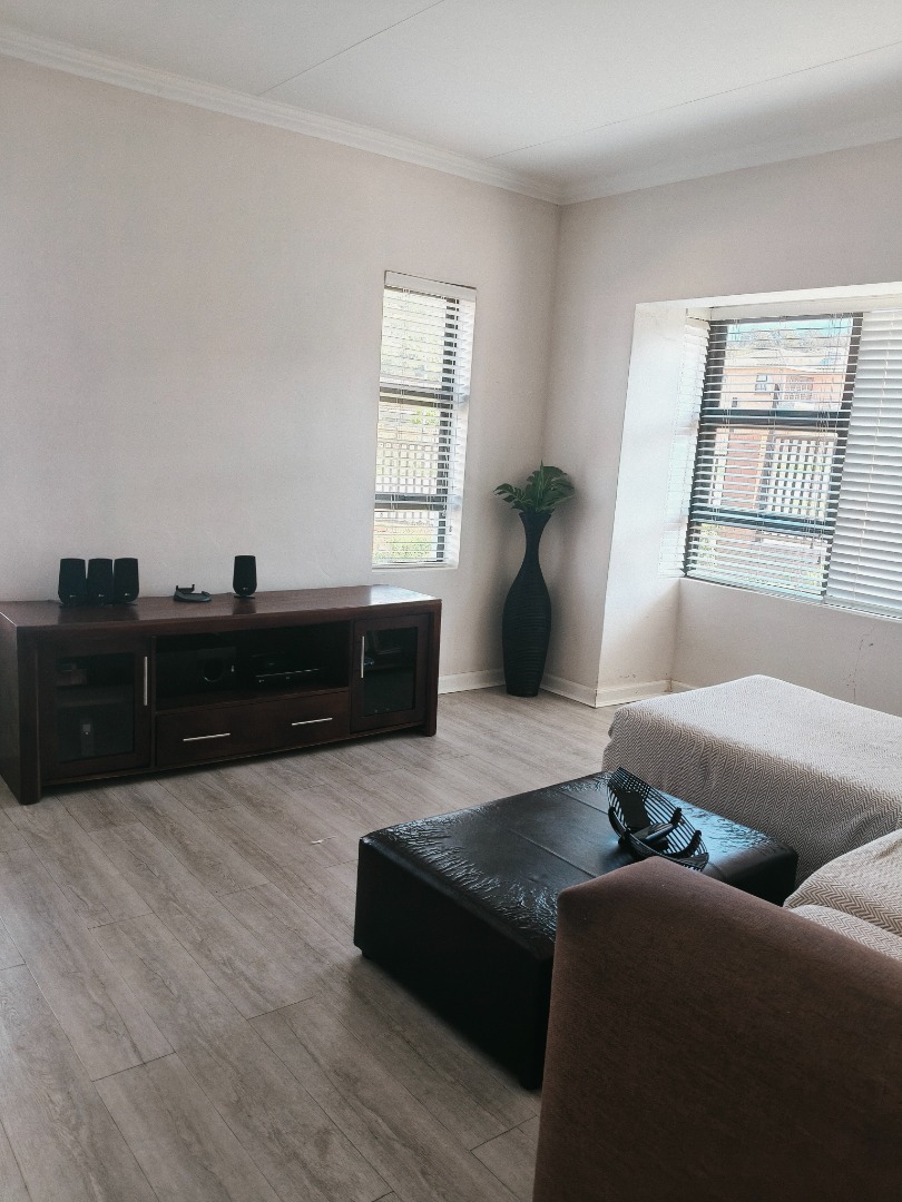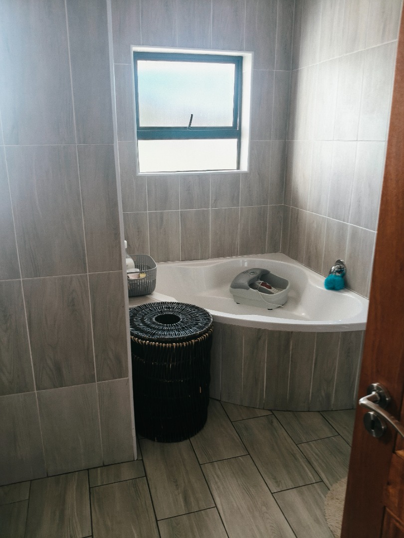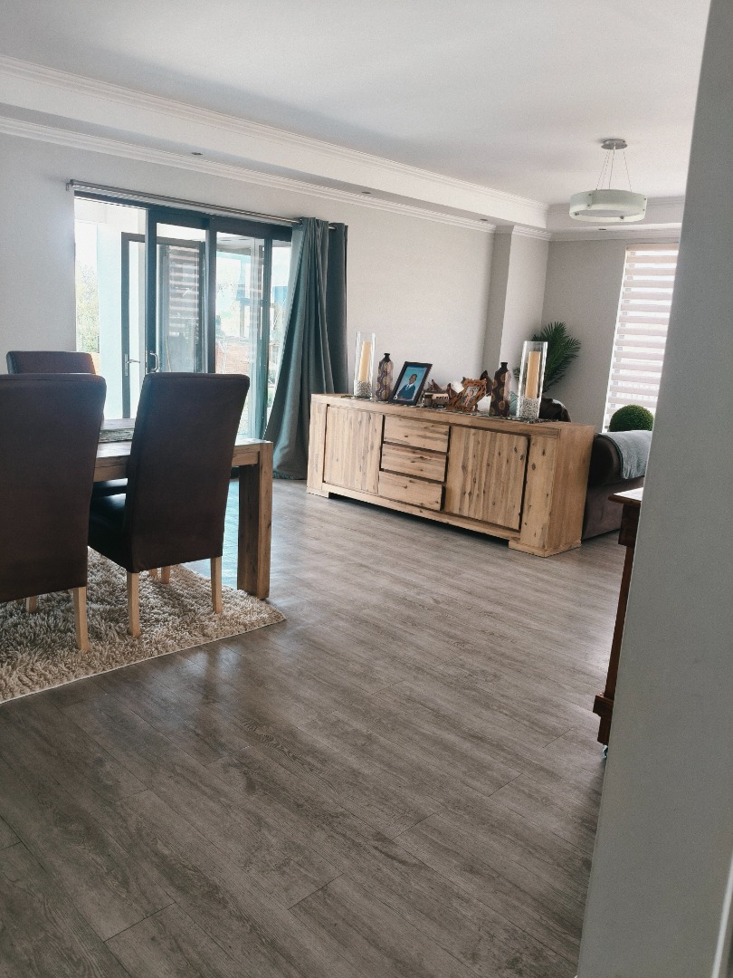 This modern 4-bedroom, 3-bathroom residence in Ladybrand, South Africa, offers comfortable living in a desirable cul-de-sac location. The interior features a spacious open-plan living and dining area, designed for both relaxation and entertaining. Modern flooring, ample natural light from large windows, and elegant crown molding enhance the contemporary feel of the main living spaces. A well-appointed kitchen serves the dining area, ensuring convenience for daily meals and gatherings. The property includes two distinct lounge areas, providing versatile spaces for family activities or quiet retreats. The home comprises four generously sized bedrooms, offering ample accommodation for residents. Three bathrooms are available, with two featuring en-suite facilities for added privacy and comfort. The bathrooms are finished with modern grey tiling and include a corner bathtub, providing a clean and functional aesthetic. Each room benefits from neutral white walls and contemporary grey wood-look flooring, creating bright and adaptable spaces ready for personal customisation. Recessed lighting further illuminates the interiors. Practicality is well-addressed with a double garage providing secure parking for two vehicles, complemented by an additional four open parking spaces. The property's position within a cul-de-sac ensures reduced traffic and a more private living environment, ideal for those seeking tranquility. This rental property is well-suited for families or professionals seeking a spacious and modern home. Its functional layout and contemporary finishes provide a comfortable backdrop for various lifestyles. The charming town of Ladybrand offers a peaceful community setting with convenient access to local amenities. Key Features: * 4 Bedrooms, 3 Bathrooms (2 en-suite) * Spacious Open-Plan Living & Dining * Two Separate Lounge Areas * Modern Kitchen * Double Garage & 4 Additional Parking Spaces * Quiet Cul-de-Sac Location * Contemporary Finishes & Flooring